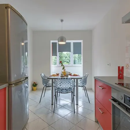 Eine voll ausgestattete Küchenzeile mit einem Herd und einem Geschirrspüler ist in der Unterkunft vorhanden. Die Unterkünfte ist nur wenige Schritte entfernt von der Bushaltestelle Starih Statuta.